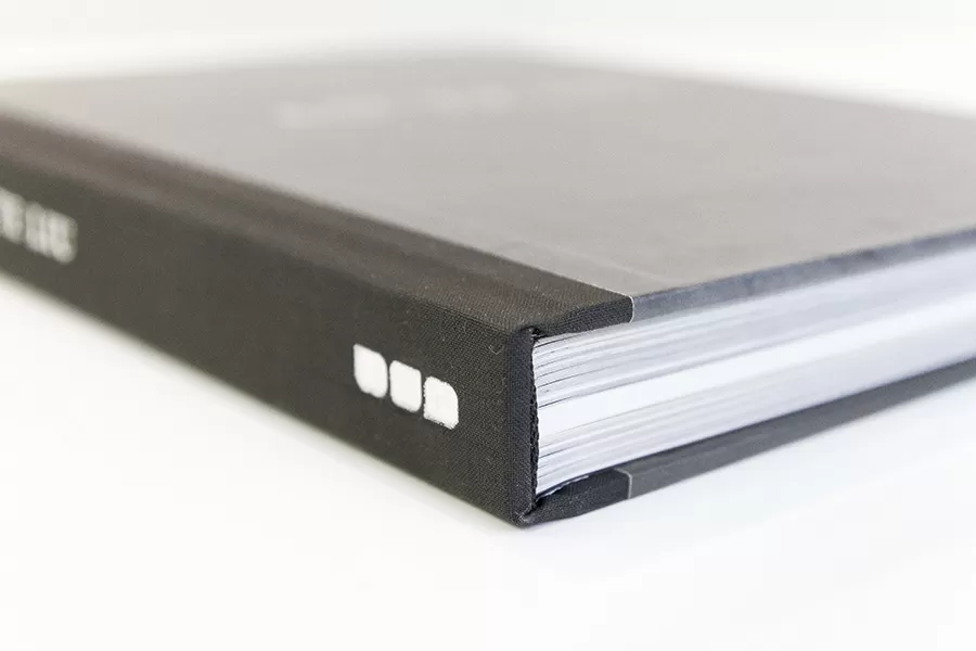 Hard cover with fabric spine
